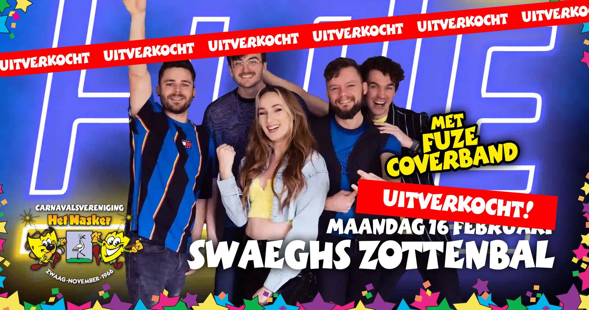 Na het demasqué loopt feestend Zwaag in de muzikale val van een fantastische top band, namelijk Fuze Coverband! Deze toppers kunnen niet wachten om jullie tot in de puntjes te entertainen.
