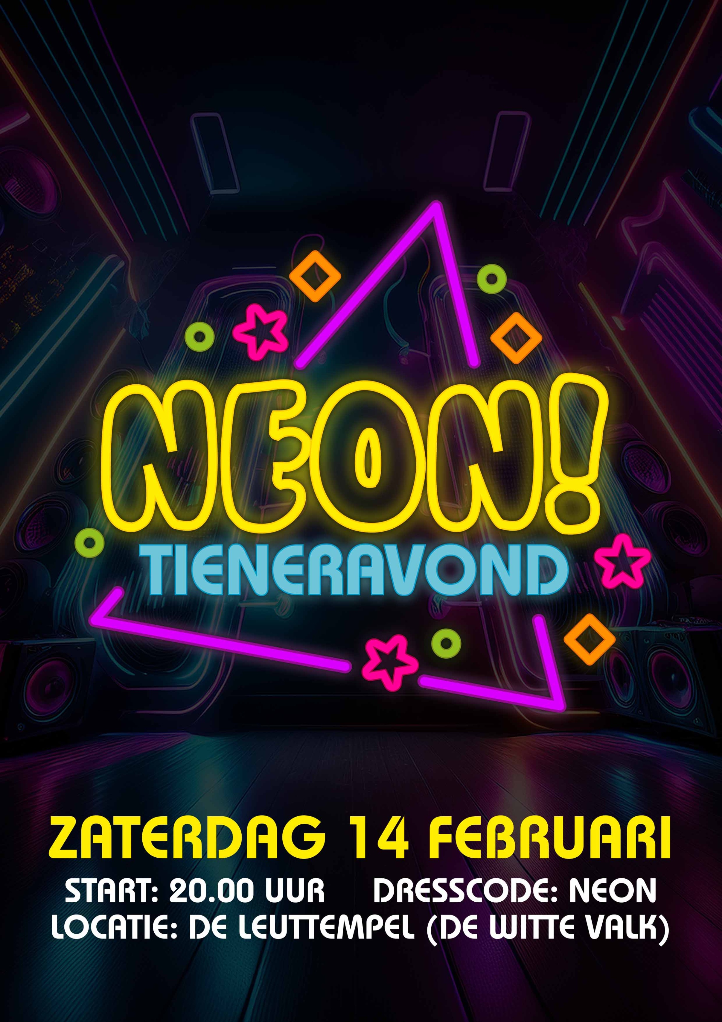 Haal de felle kleuren, breekstaafjes en neon kleding maar uit de kast, want deze avond ben je op bezoek in de enige echte NEON BAR. De zaal wordt speciaal voor deze avond helemaal aangekleed met NEON en blacklight effecten.