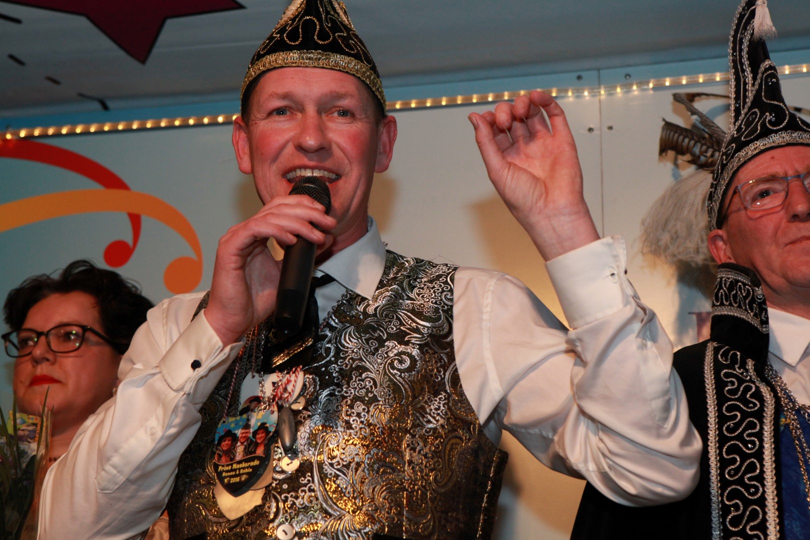 Naast spraakwaterval was Marco de begeleider, contactpersoon, taxi en aanspreekpunt voor de Prins en Hofdames. Marco heeft al heel wat Prinsen en Hofdames de weg gewezen door de jaren heen. Van ziekenbezoek naar ziekenbezoek en van het ene 50 jarig bruidspaar naar het volgende. Marco zorgde er verder voor dat elke ochtend, middag en avond iedereen op tijd klaar stond en het programma kan starten.