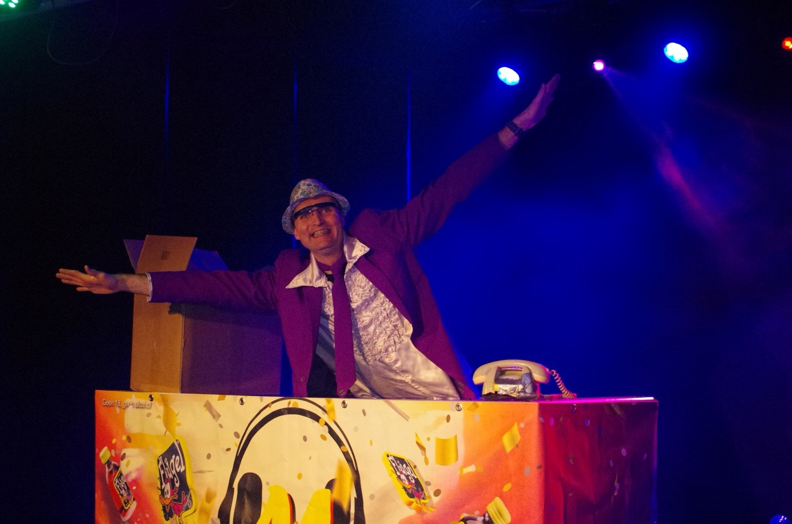 Hij draaide niet alleen de meest uiteenlopende feestmuziek maar zong ook de sterren van de hemel met maffe verkleedpartijen en gekke attributen.