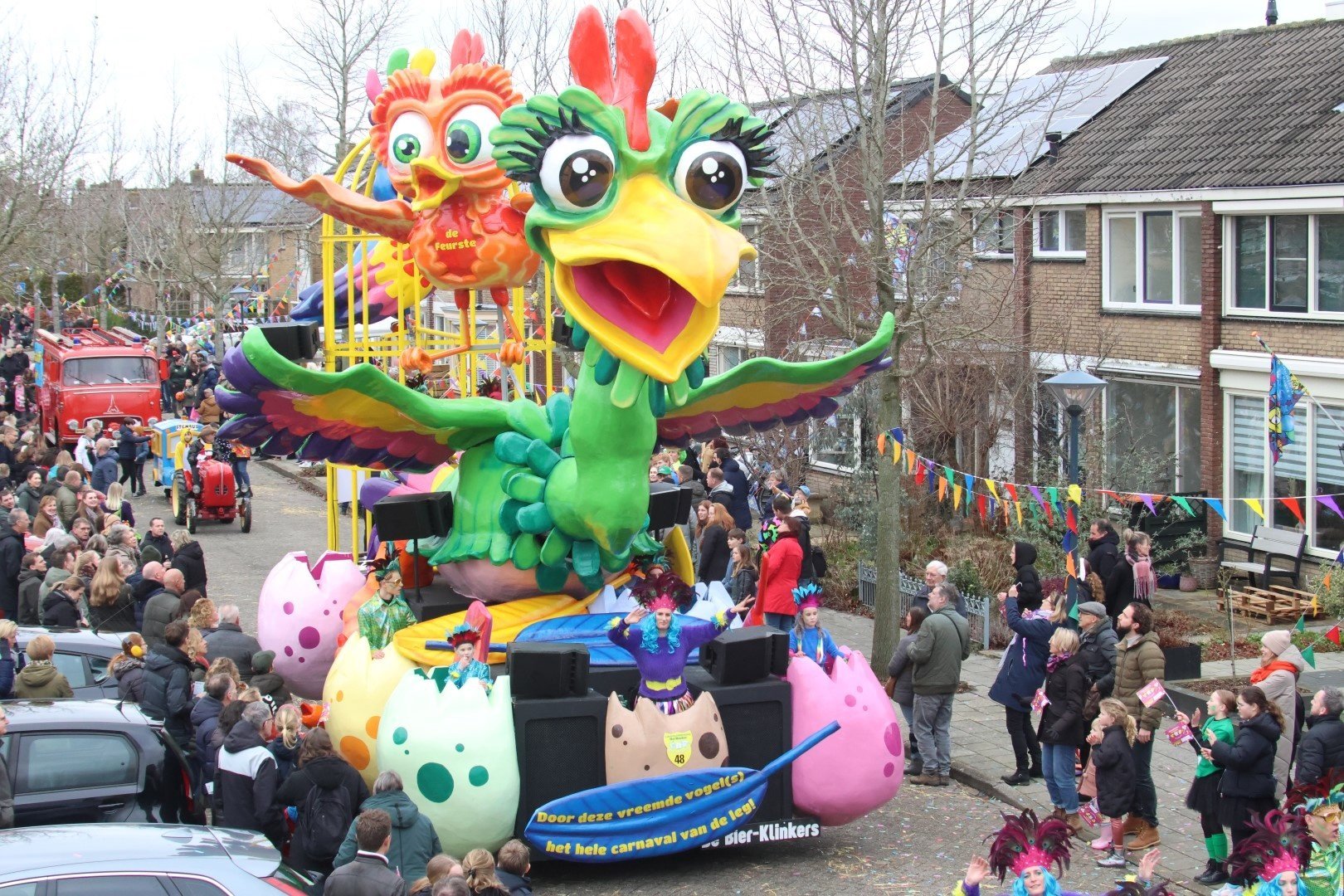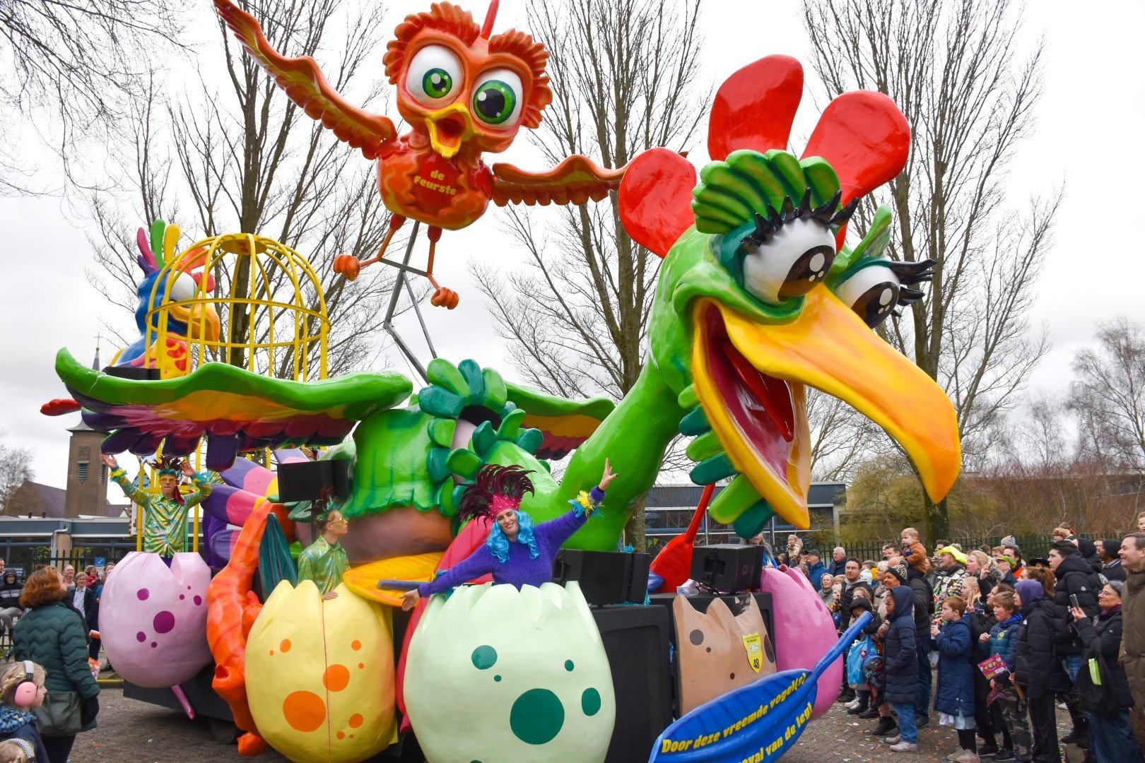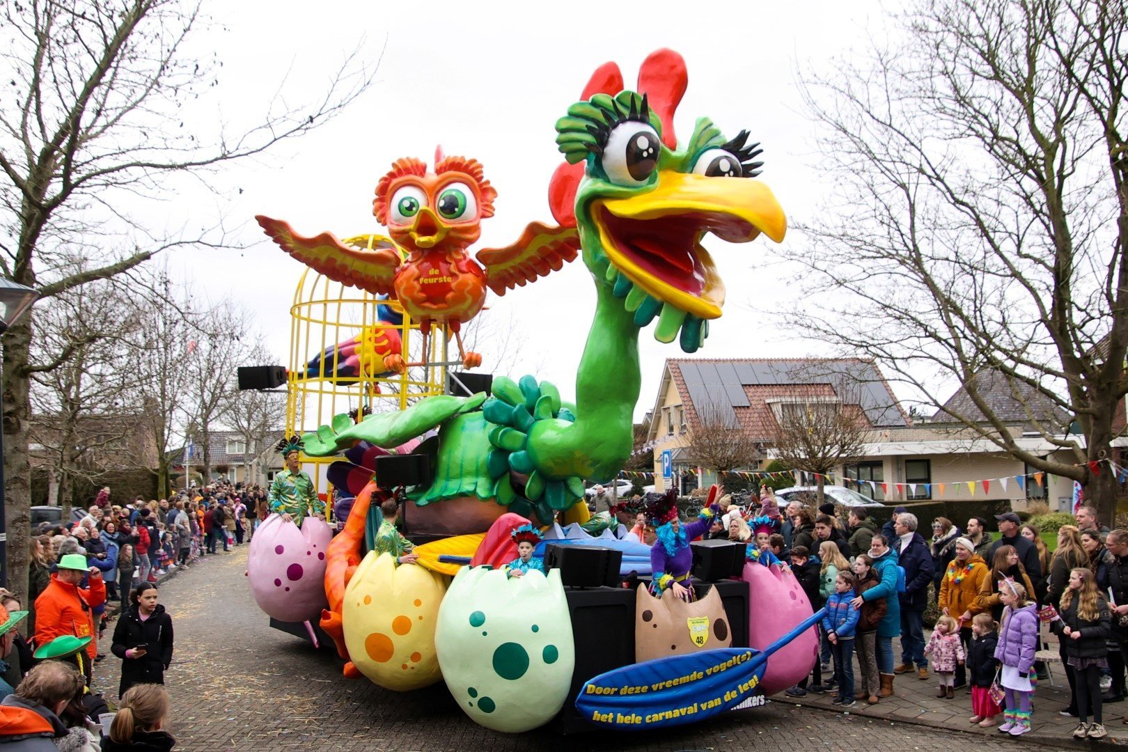 In de schuur bij van Diepen groeide iets heel moois uit de eieren: drie grote vreemde vogels die het carnaval van de leg kwamen brengen.