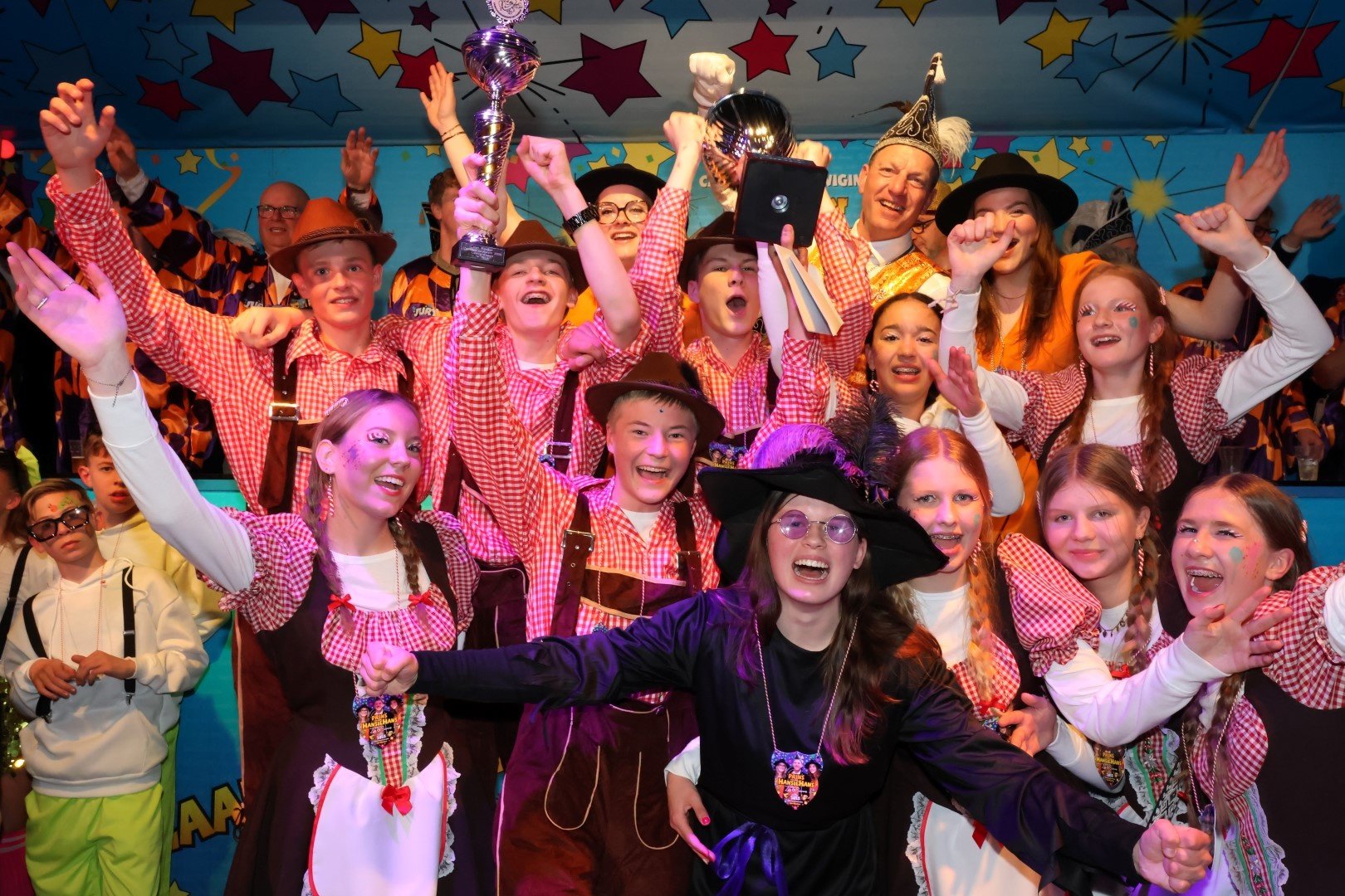 Het Masker feliciteert De Carnavalsknallers met de fraaie eerste plek bij de Loopgroepen voor deze jonge Kweekvijvergroep.