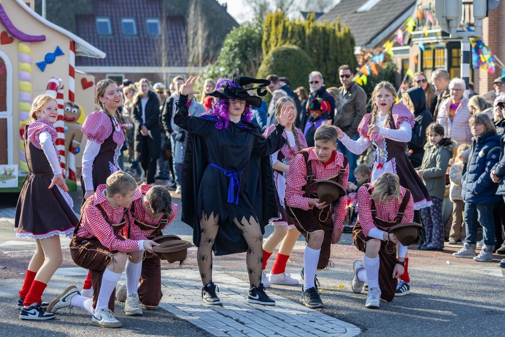 Het snoephuisje van de Heks was in zoete pastelkleuren nagemaakt en zo af en toe werd er ook van gesnoept.