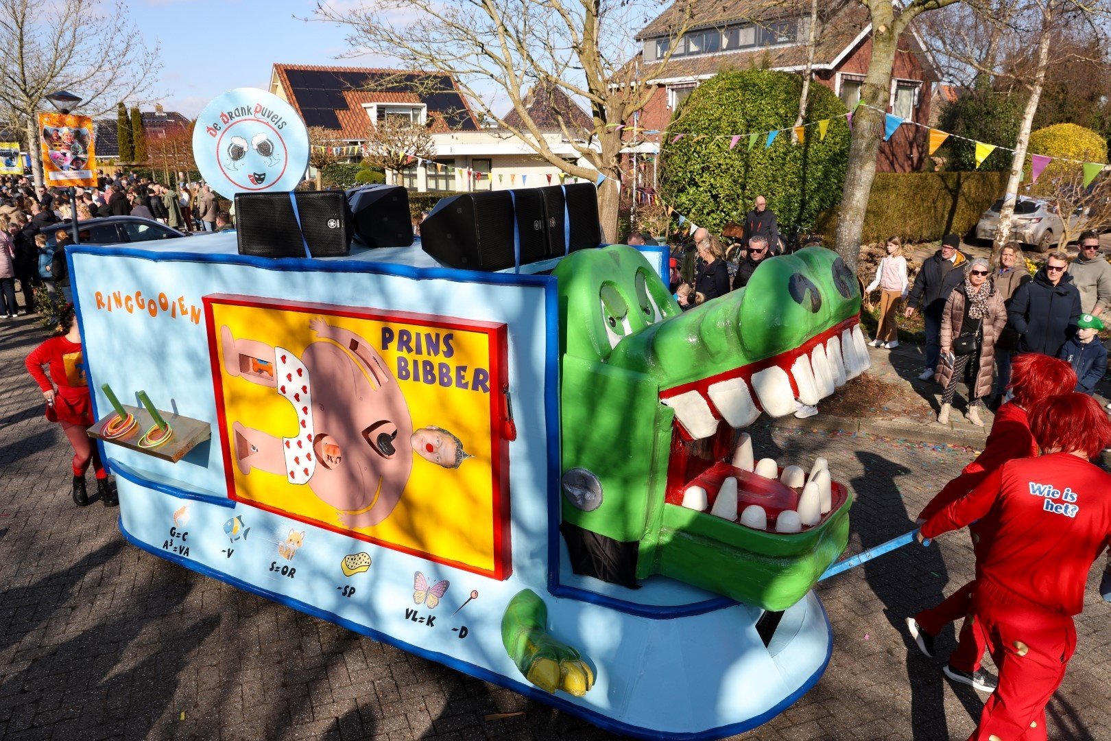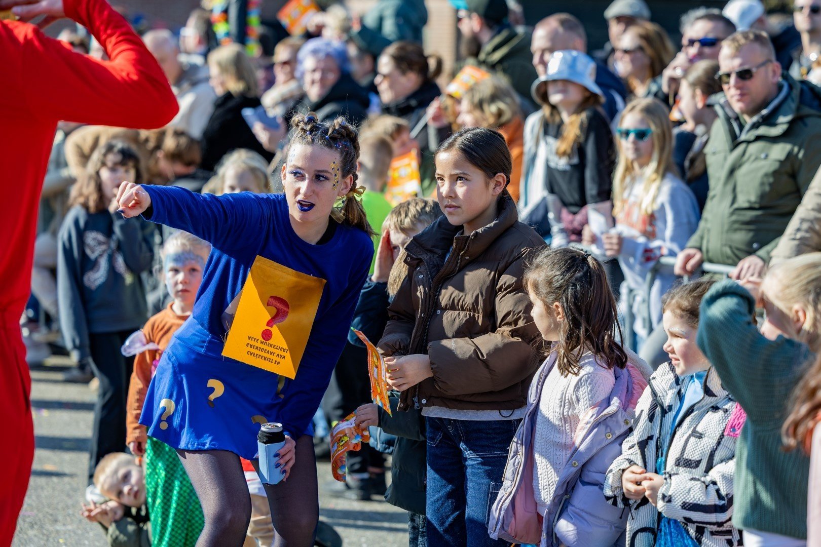 De kinderen, maar ook de ouderen langs de kant deden gezellig mee met De Drankduvels.