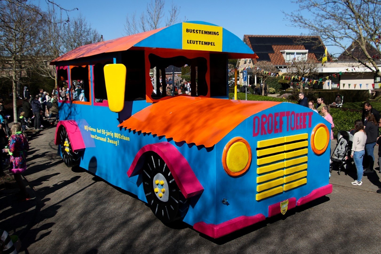 De Droeftoeters vierden het 55-jarig BUStaan van het Zwaagse carnaval met een grote ‘we-are-going-to-Ibiza-bus’.