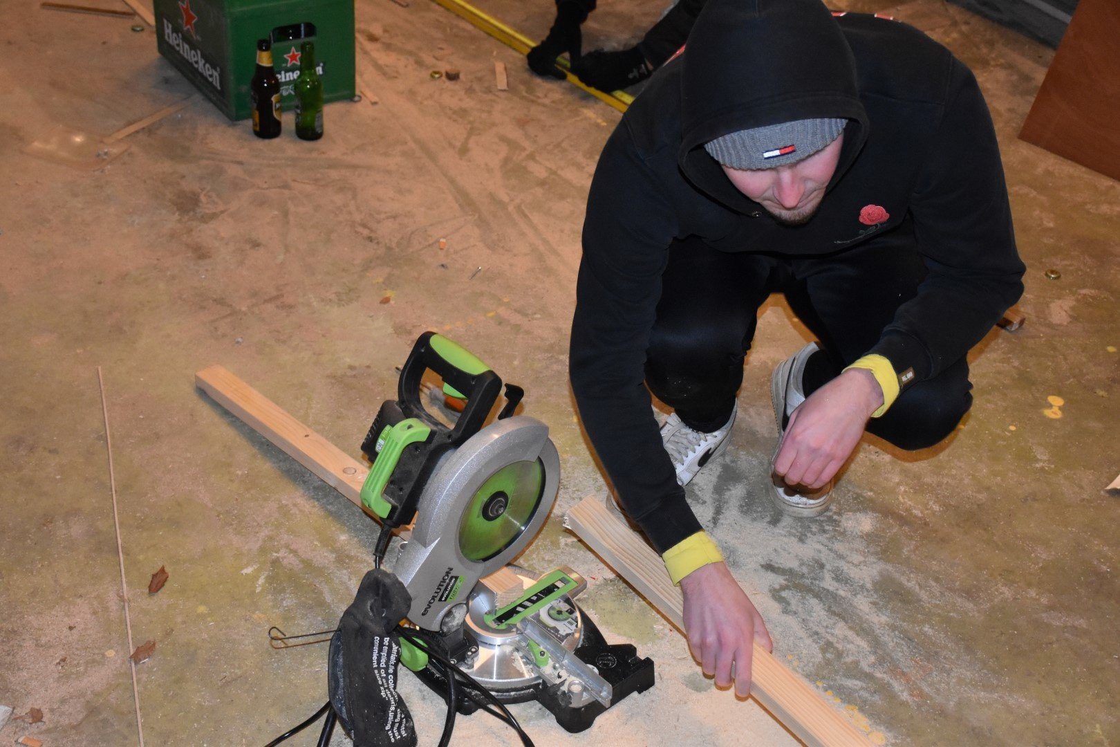 In de schuur van Gerrit Bakker wordt er gebouwd aan iets anders maar heeft toch ook wel een beetje te maken met de aprés-ski, derde helft of andere feestelijkheden.