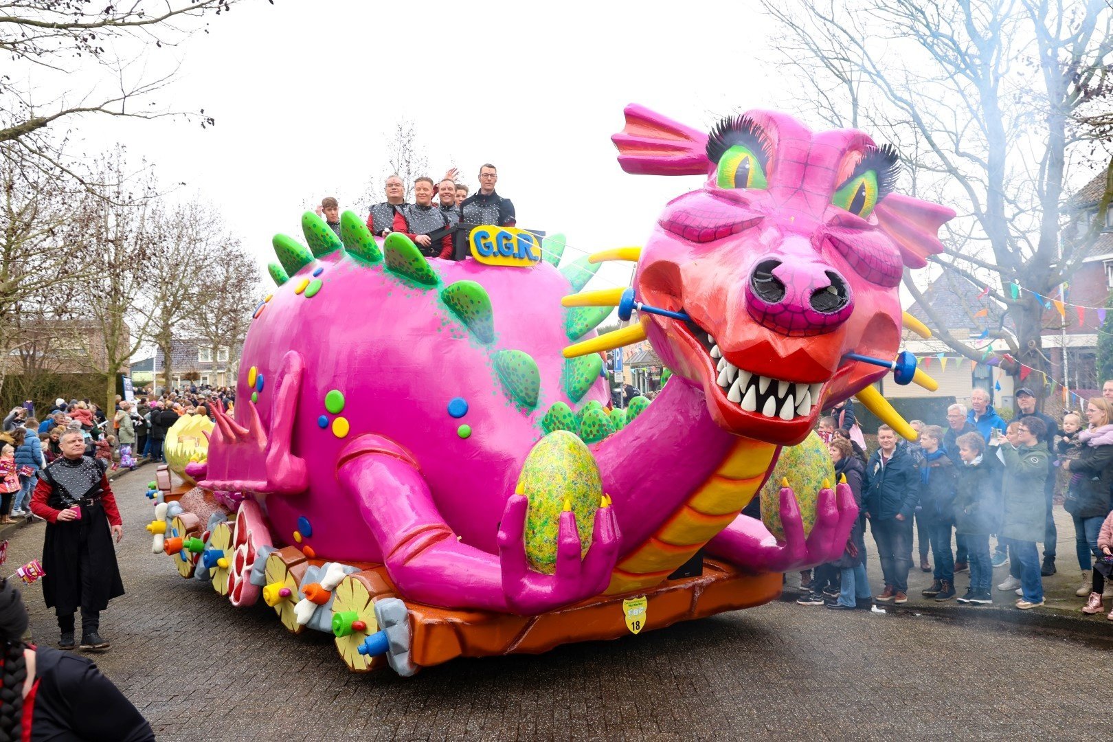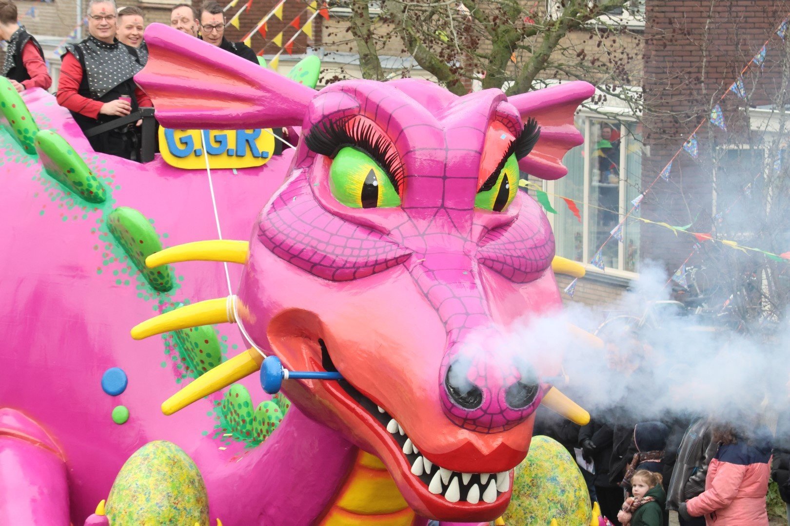 Dat de Goudgele Rakkers een draak van een wagen hadden is zeker niet lelijk bedoelt want het was letterlijk een draak van een wagen; een knalroze vriendelijke draak.
