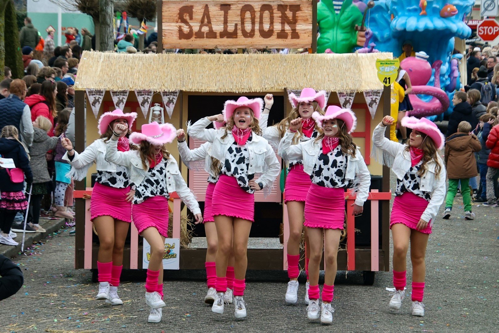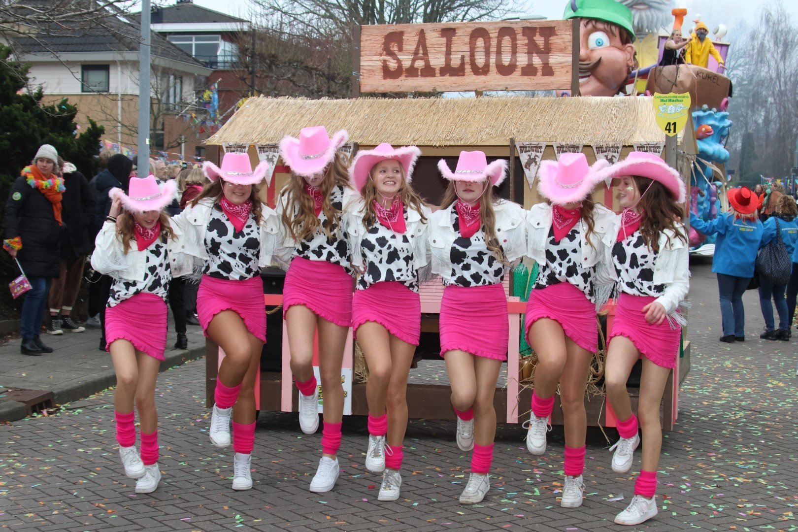 In de optocht waren ze cowgirls van de prairie die met hun rijdende saloon over het parcours gingen. Daarbij hadden ze een professioneel dansje ingestudeerd en met de uitvoering zag de choreografie er strak uit. Het enthousiasme en uitstraling sprak boekdelen en dat was mooi om te zien.