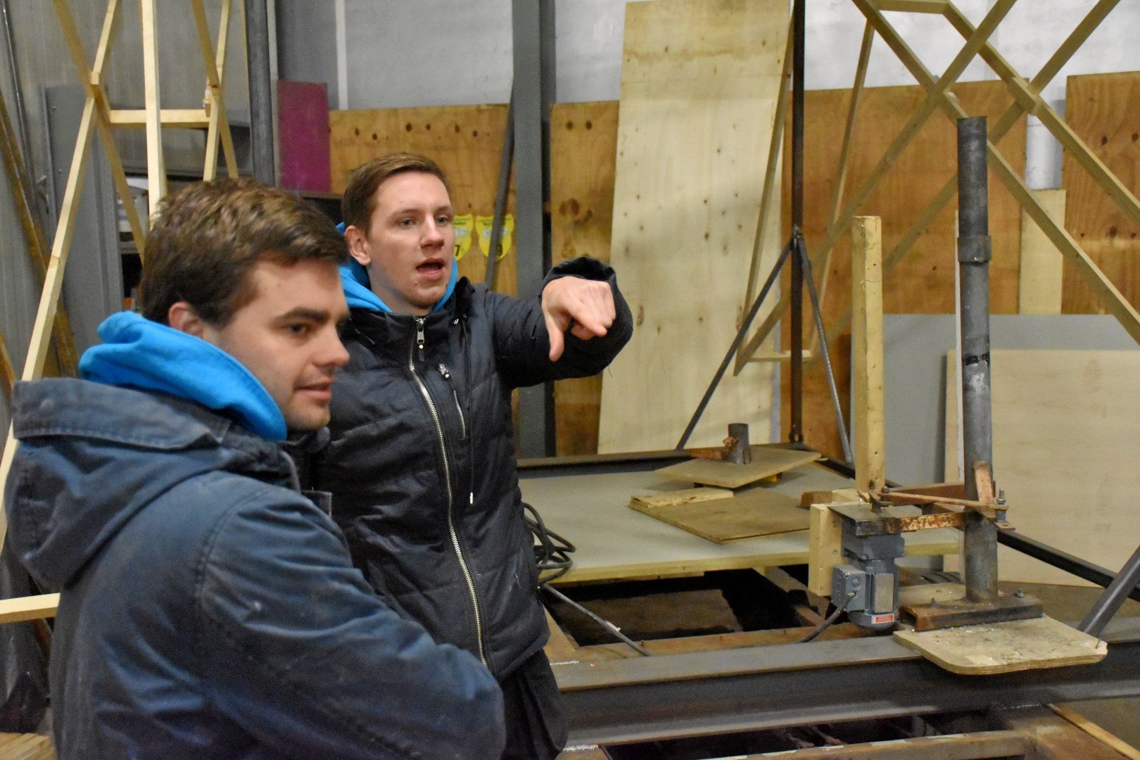 Druk gebarend lopen ze als ongeleide projectielen rond in de schuur met tevens een beetje hun ziel onder hun arm waar ze ook wel een beetje stuurloos lijken.