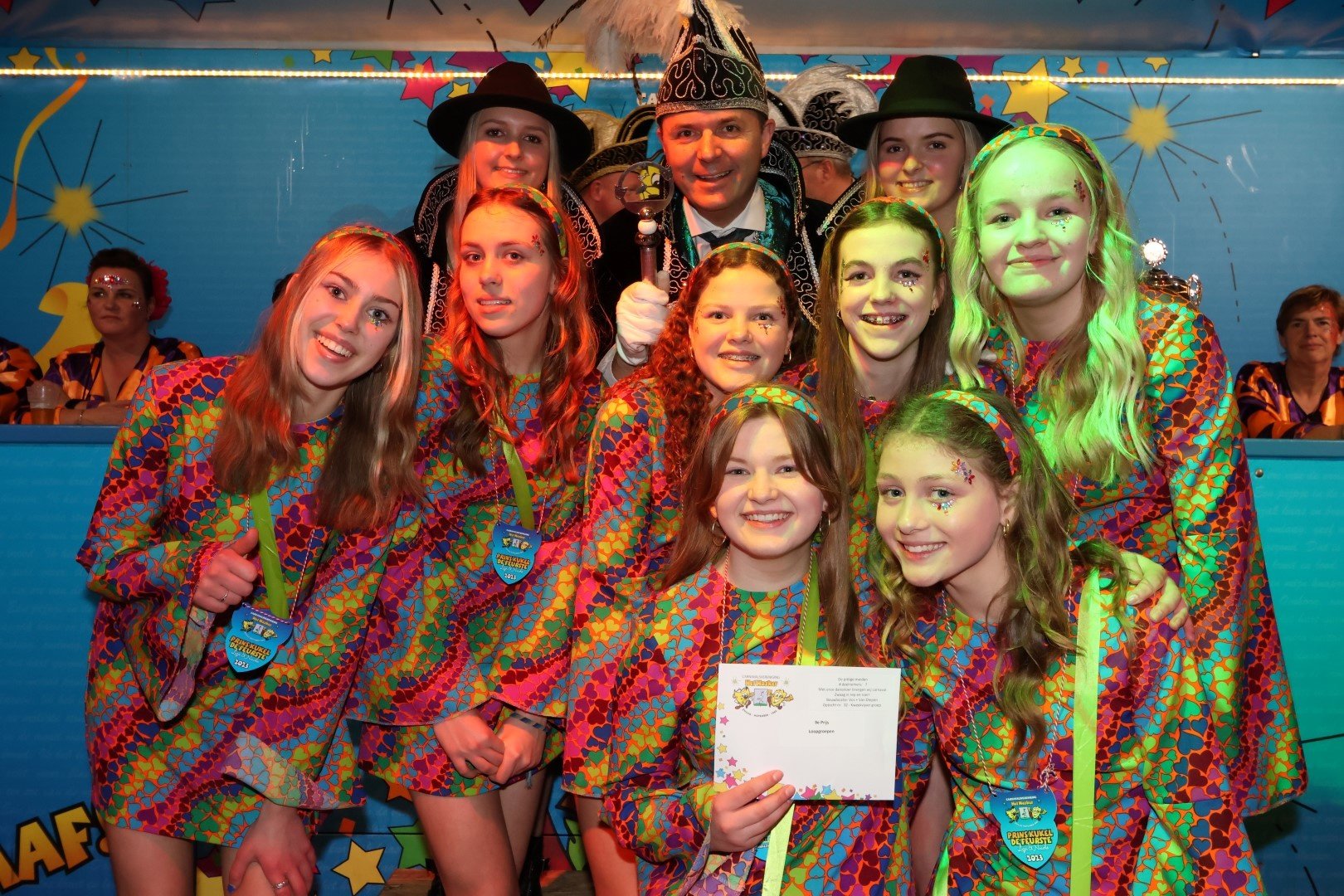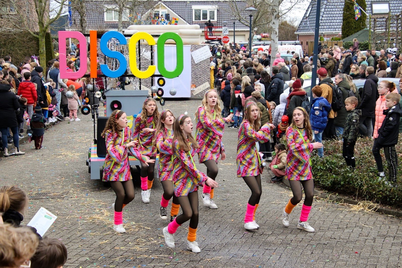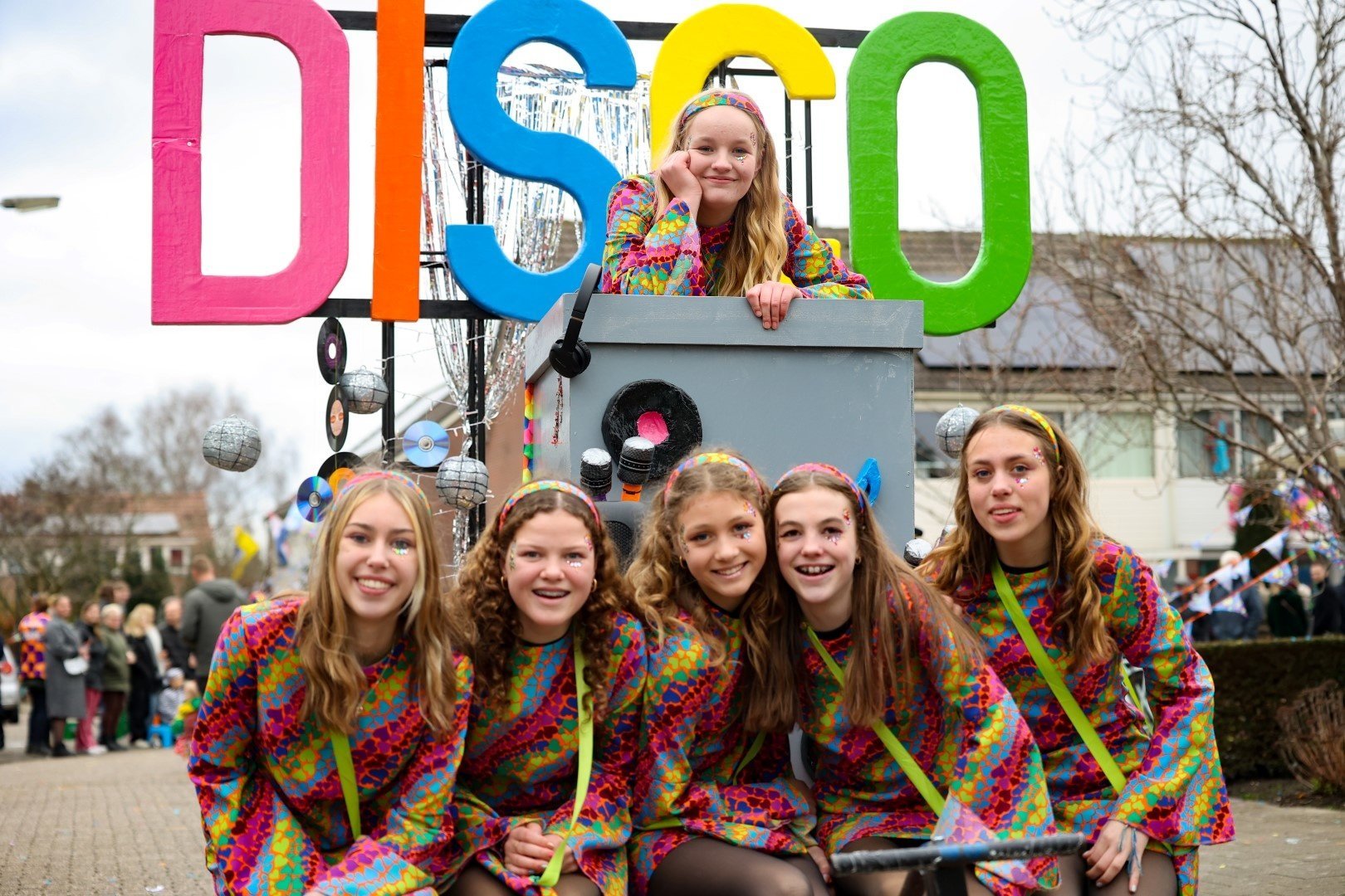 Nieuwe deelnemers met alleen maar pittige moiden in de groep. Er ontstond bij deze dames een ware Disco tijdens de optocht met hun rijdende discovloer. Je weet wel, met van die gekleurde vakjes.