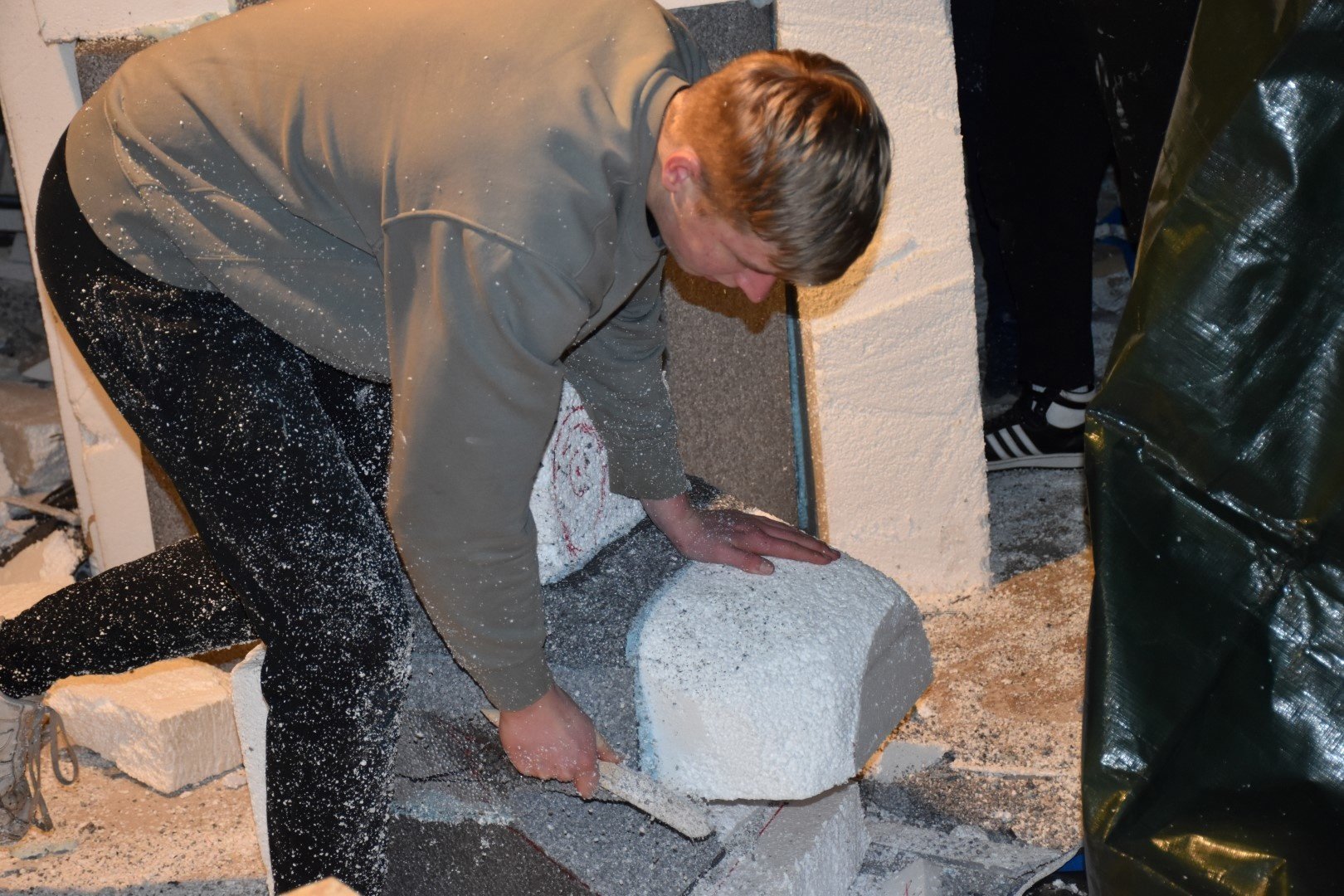De Spillebarrels deden vorig jaar voor het eerst mee en hebben de smaak nu goed te pakken. In een nieuw onderkomen aan de Dorpsstraat wordt er iets groter gebouwd en meer piepschuim gebruikt wat een oerwoud aan korreltjes oplevert. Maar dat mag de pret niet drukken want alles wordt ook weer netjes opgeruimd voor schuureigenaar Joost. Ze hebben zich gisteravond in kunnen schrijven dus de trekker is ook geregeld. Daarvoor hebben ze nog twee-en-een-halve week om deze bij de creatie te betrekken. Mooi om het enthousiasme bij deze jonge groep te zien.
