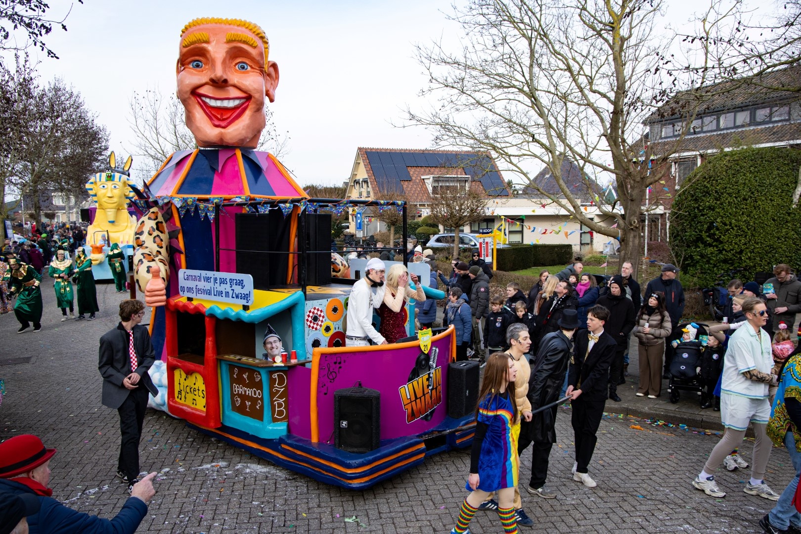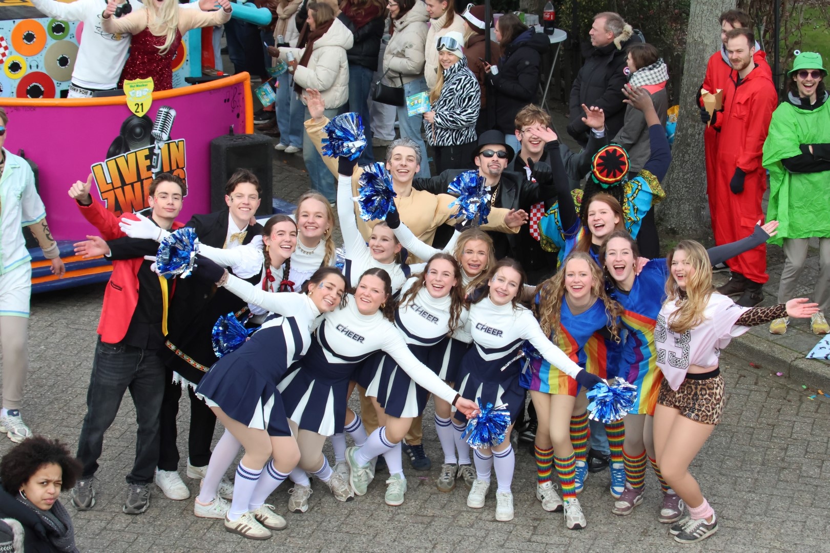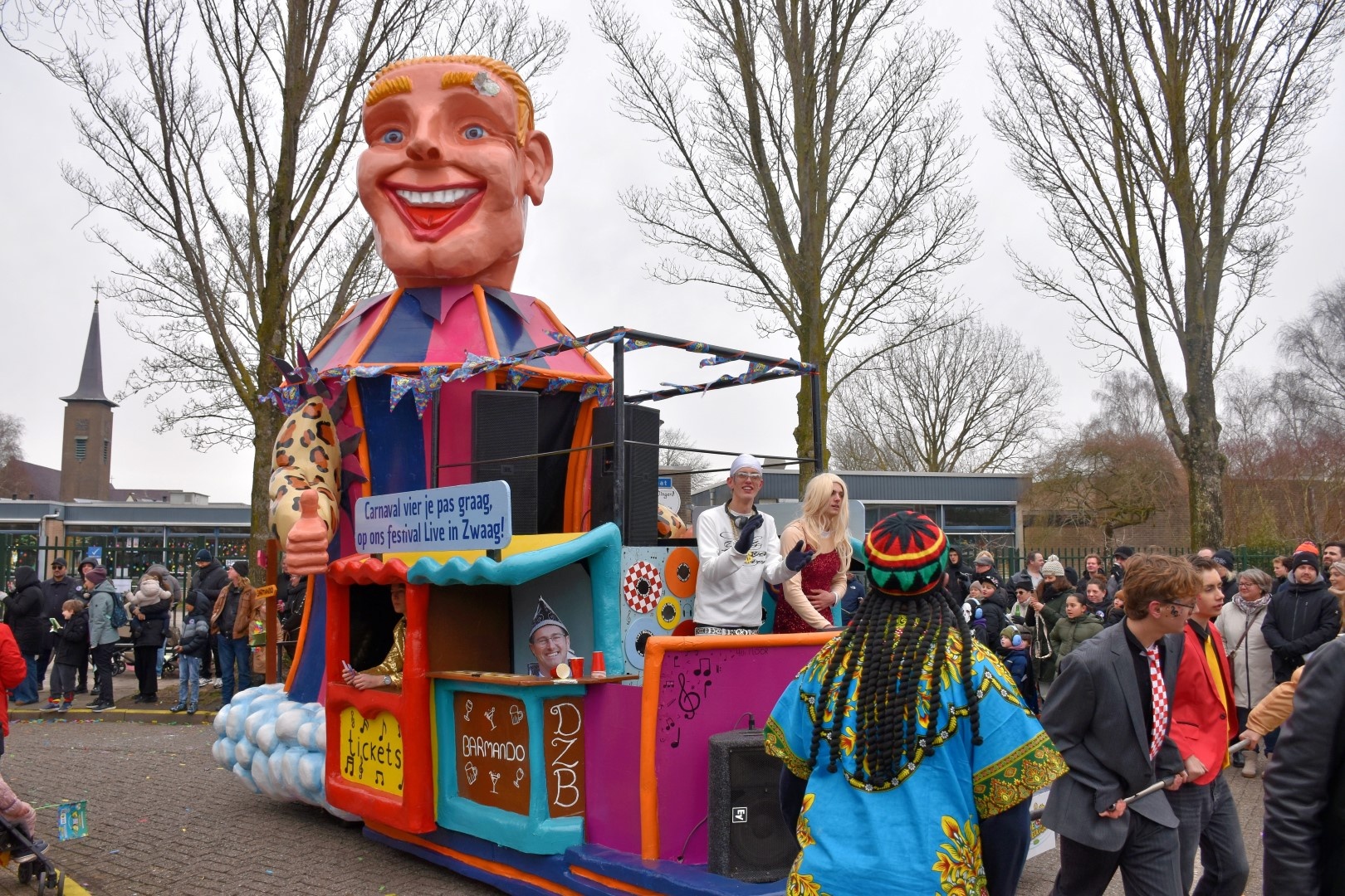 De pr-machine van De Zwaagse Borries was al dagen voor de optocht overal zichtbaar. De pamfletten met daarop het gelijkende logo van het bekende Hoornse feest was voor de gelegenheid omgedoopt naar Live in Zwaag.