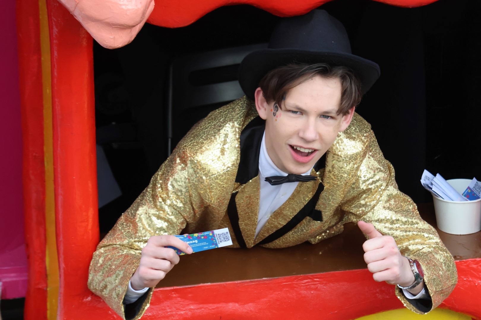 De Pop was uit de festivaltent gegroeid en op het podium ervoor traden artiesten op die door het publiek bepaald werd door aan het rad te draaien. Het ging van links naar rechts met de Snollebollekes of de Alpenzusjes en van Guus Meeuwis door naar Andre Hazes.