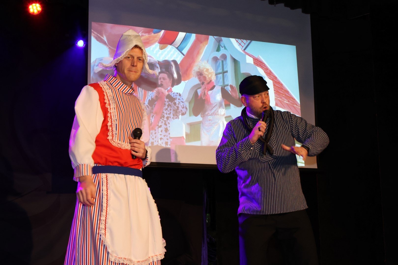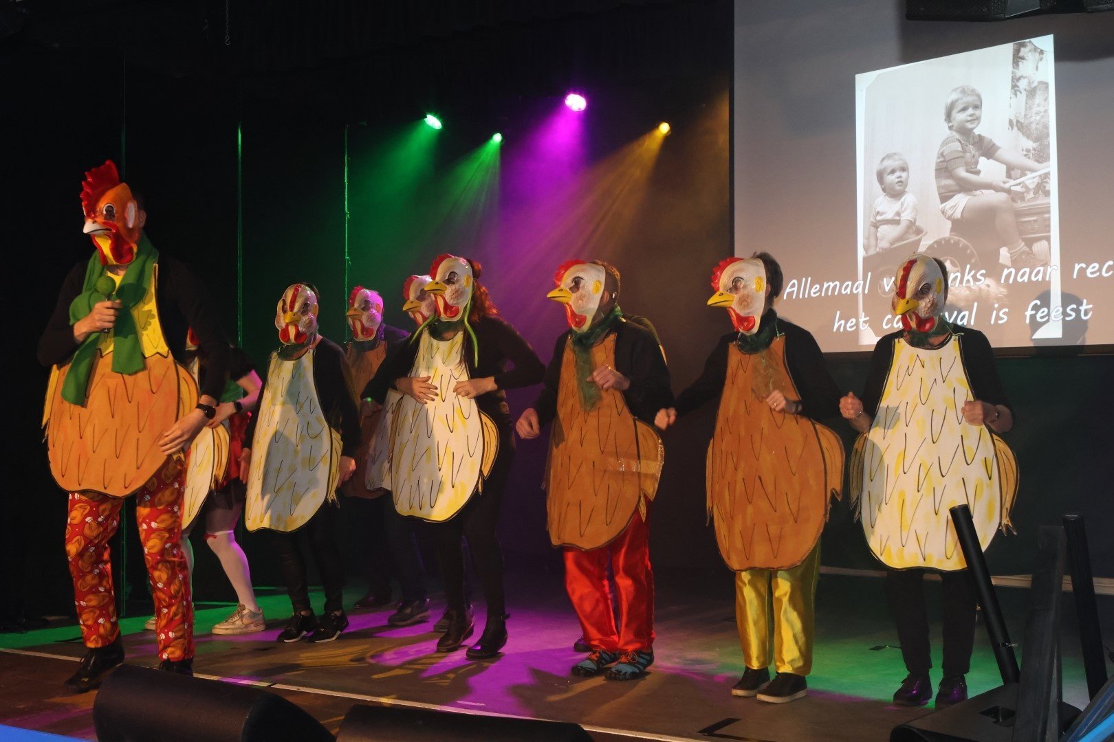 Het Prinsenlied is traditiegetrouw de aftrap van de Dikke Dolle Dinsdag waarna buschauffeur Jos Bakker en musicalster Marleen Kunst het verder oppakte en zongen een mooi duet de Pastorale (ik heb je lief). De familie van Prins Kukel en Prinses Renate hadden het grootste carnavalslied van de afgelopen jaren toepasselijk verbouwd en ondersteund met foto's: 'van links...naar recht...'