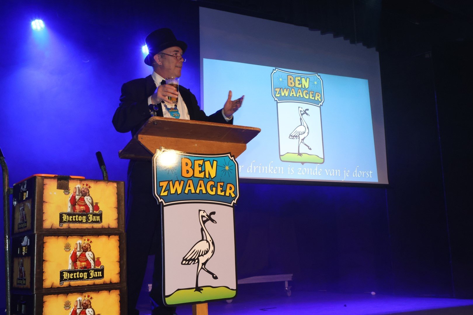 Bernd Laan was als 'burgemeester Ben Zwaager' de vervanger van Jan van westen en deed het uitstekend vanaf het katheder waar menig Zwager over de tong ging, alles fictief natuurlijk.