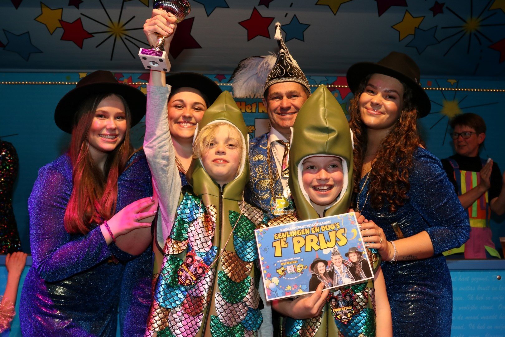 De grote winnaars bij de eenlingen en duo's zijn geworden: De feestvissers met Als een vis in het water voelen wij ons met Zwaags carnaval