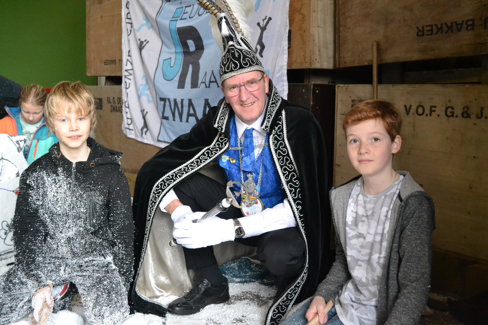 Prins CoBra en Hofdames Kelly & Rianne keken hun ogen uit bij het bezoek aan de Jeugdraad Piepschuimworkshop.