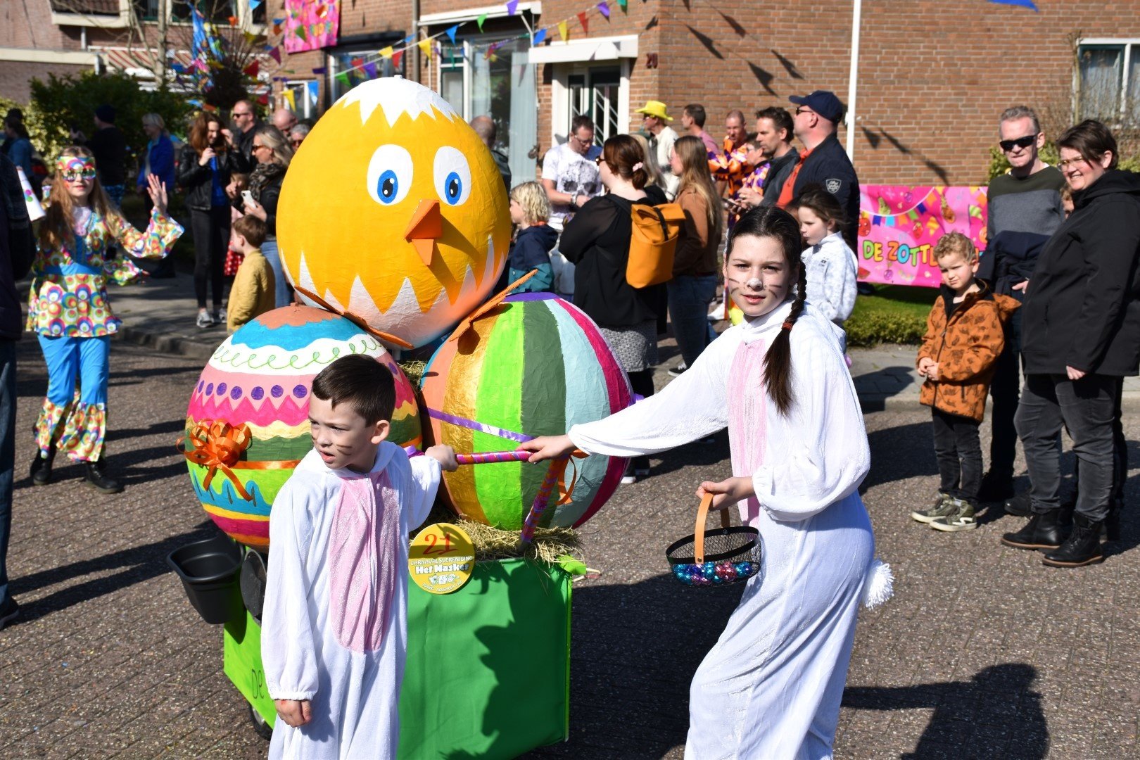 Om 14.00 uur precies startte vanaf het zonovergoten parkeerterrein bij de Westfriezen de Grote Kinderoptocht.