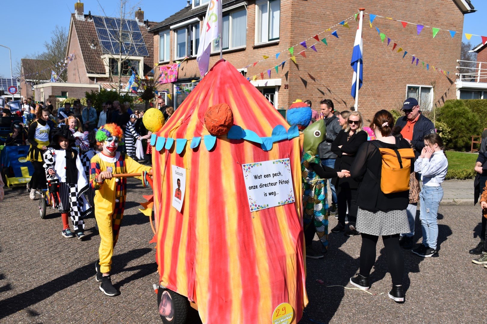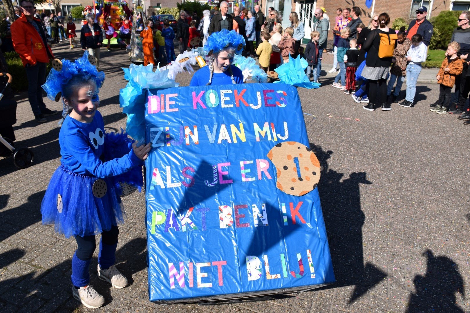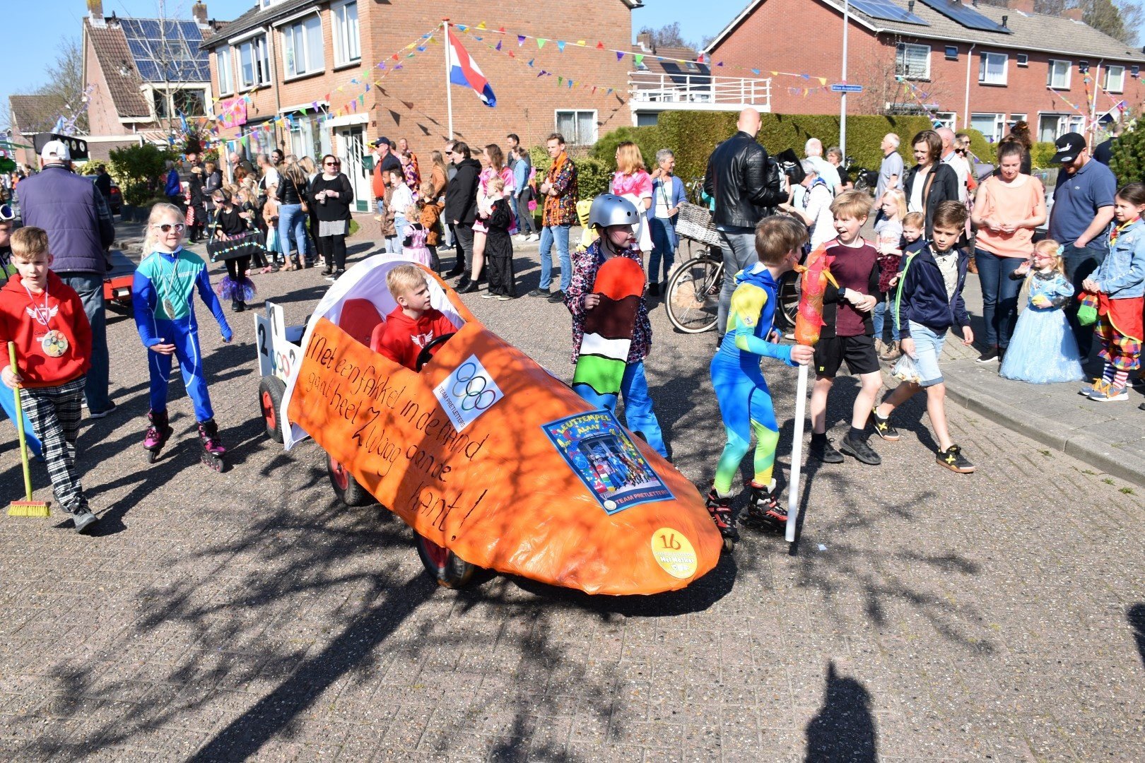 De route leek te kort om iedereen in polonaise door het dorp te leiden en de papa's en mama's, opa's en oma's verdrongen zich voor de beste plekjes langs de route.