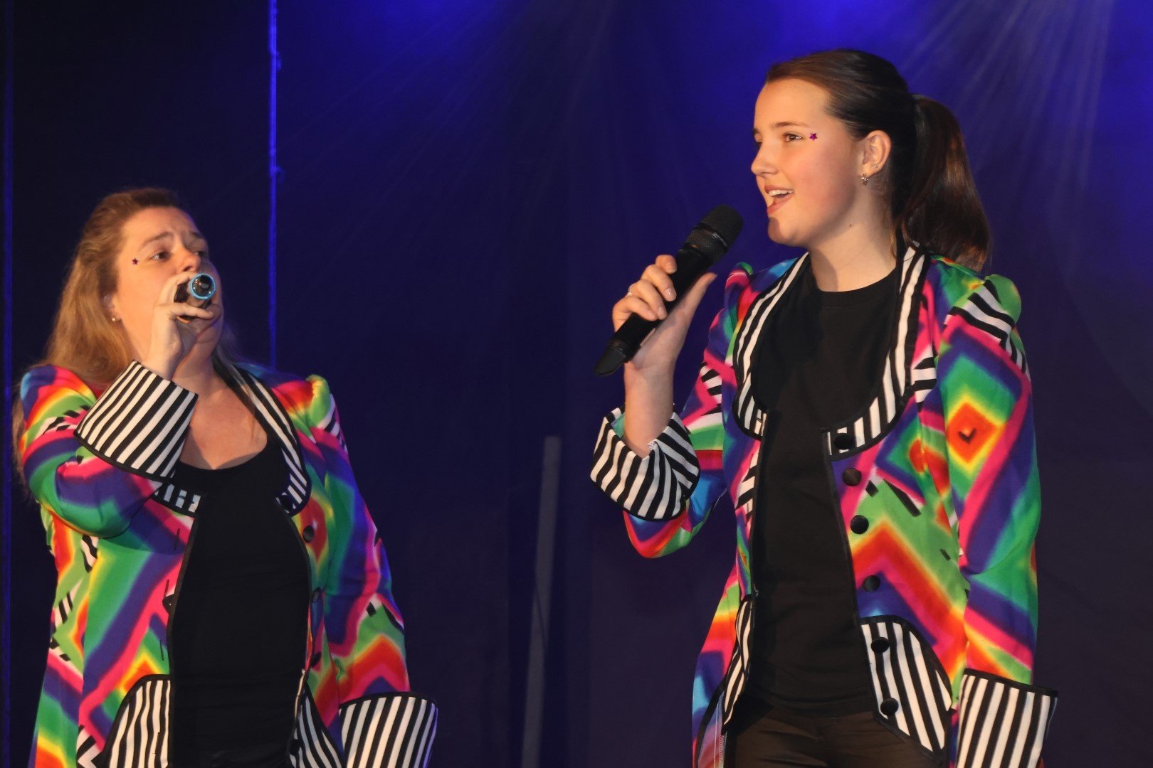Met een paar luchtige kwinkslagen over Zwaagse coryfeeën , manoeuvreerde PatríQ zich richting de pauze…maar niet voordat de laatste artiesten werden gepresenteerd. Marleen Kunst en Esmee Bakker zongen 2 duetten en dat klonk als een klok. Met een nummer van Anouk en Emma Heesters en het afsluitende nummer 'Cover me in Sunshine', ging iedereen tevreden richting bar om de benen te stekken en de keel te smeren.