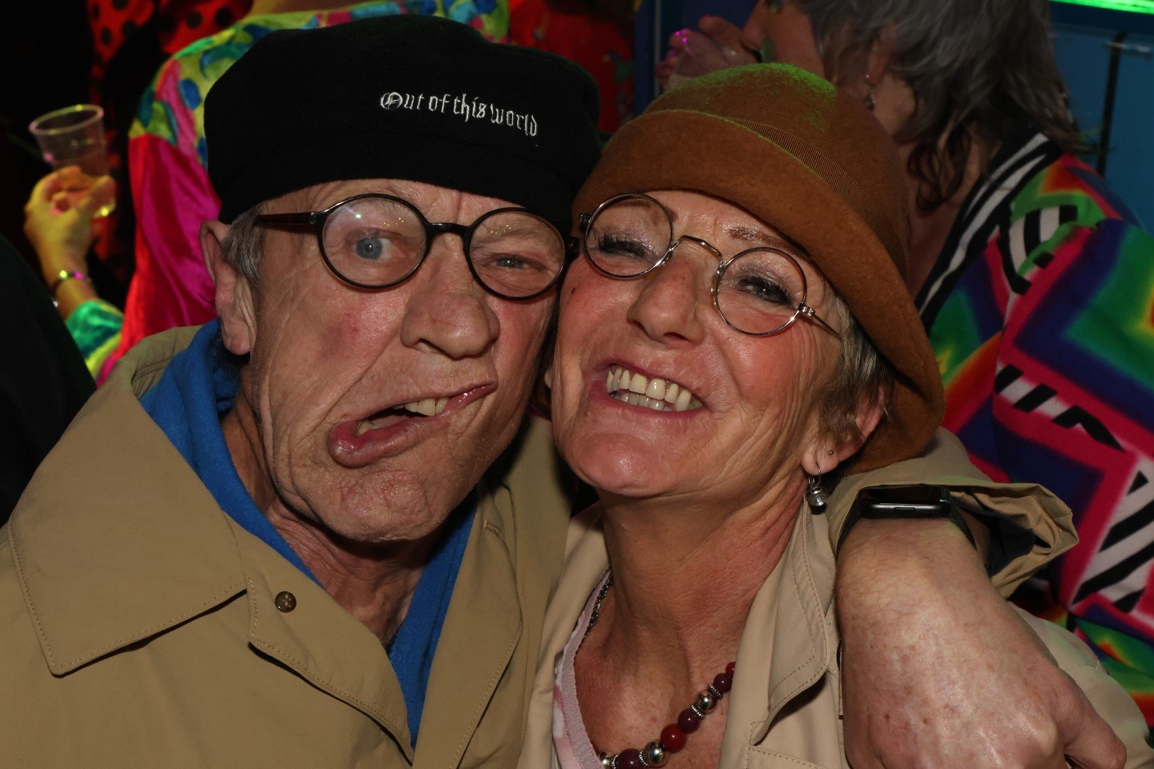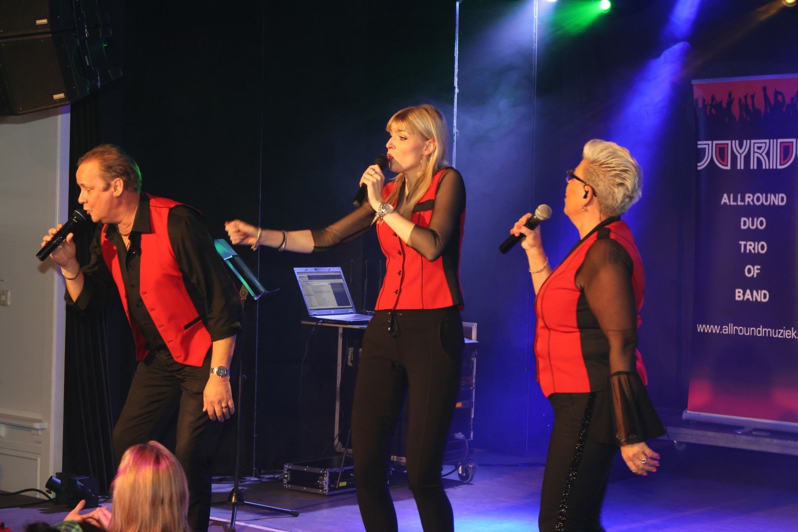 Zo kwam een eind aan de Knapzakken-show. Uiteraard niet voordat alle medewerkers werden genoemd en bedankt voor ieders inzet. De microfoon en podium werden overgedragen aan de band Joyride die er werkelijk waar een muzikale show en tijdreis van maakte met leuke, gezellige en aanstekelijke nummers en verkleedpartijen van jewelste. En zo ging de Zwaagse gezelligheid nog een paar uurtjes vrolijk door.