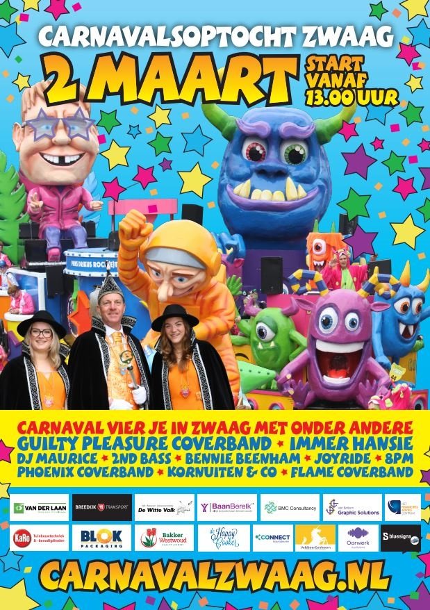 De Optochtposter is af te halen bij Cor & Anja Deun, Dorpsstraat 154 te Zwaag.