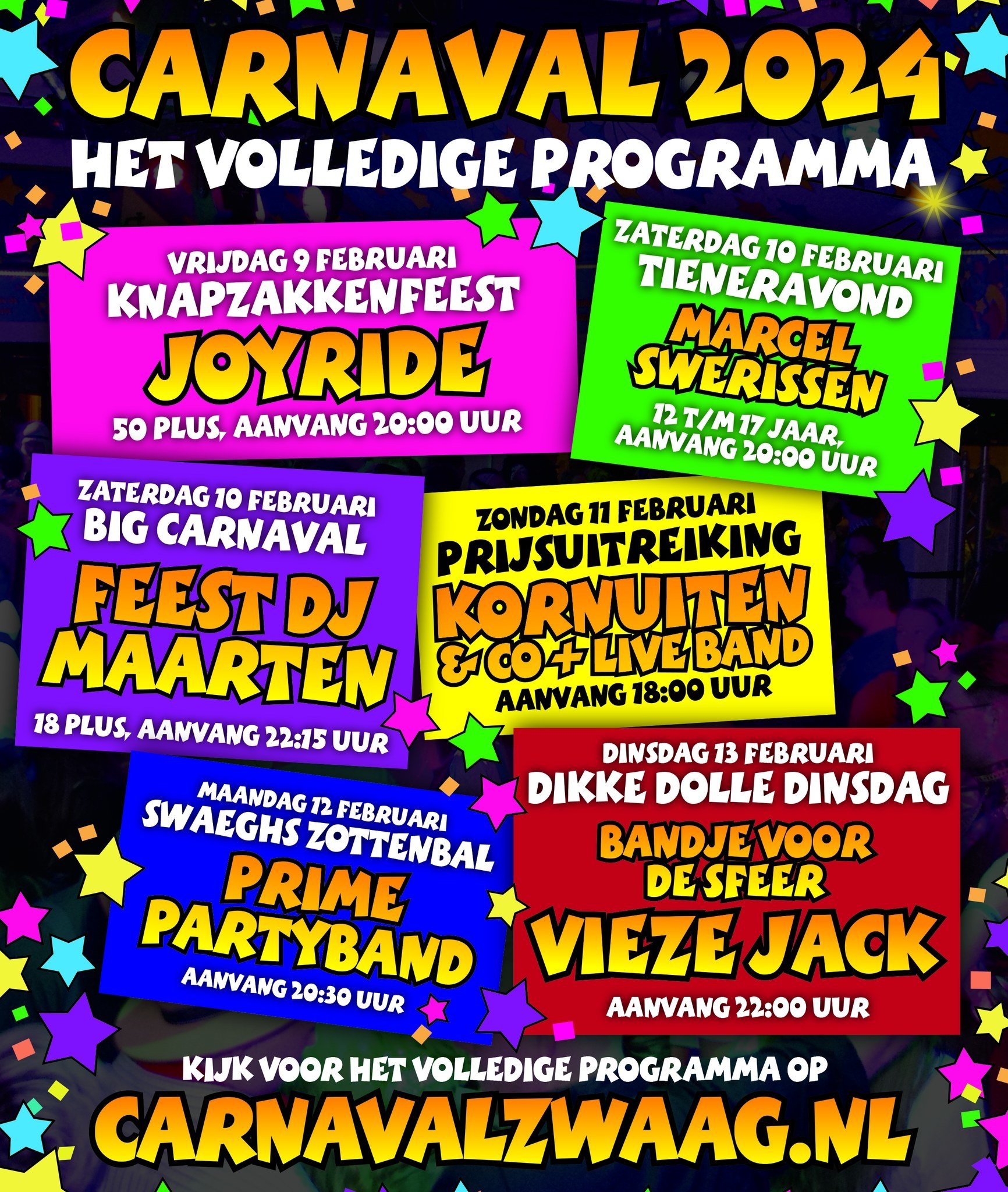 Tijdens de MaskerPubQuiz afgelopen zaterdag is de volledige line-up van het aankomende carnaval gepresenteerd. En die lijst met artiesten is weer fantastisch! Elke avond kunnen de voetjes van de vloer en gaat het dak eraf. We kunnen bijna niet wachten! Naar welke artiest kijken jullie het meeste uit?