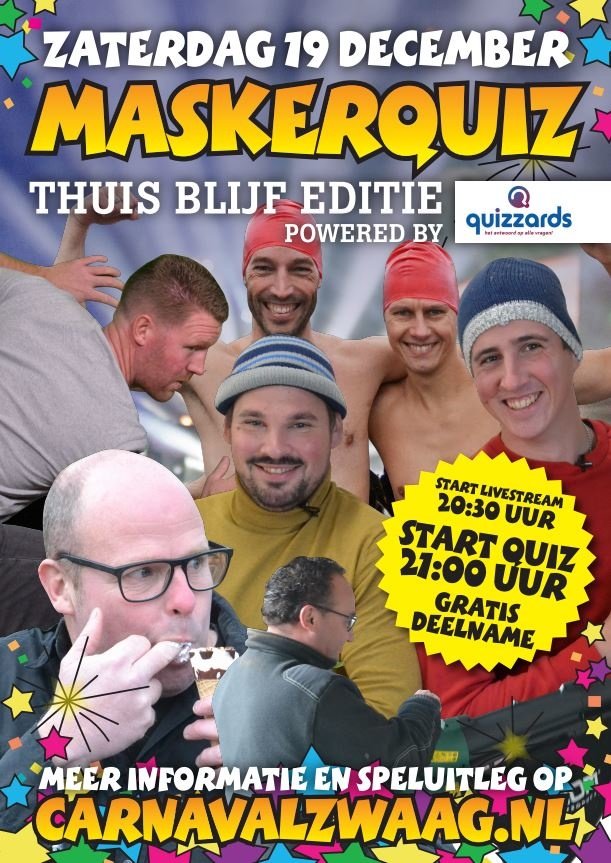 Elk jaar is de MaskerQuiz al bijzonder maar nu extra uniek. Nog nooit eerder is de MaskerQuiz namelijk online gehouden zodat iedereen het thuis mee kan spelen of mee kan kijken, de Thuisblijf Editie dus.