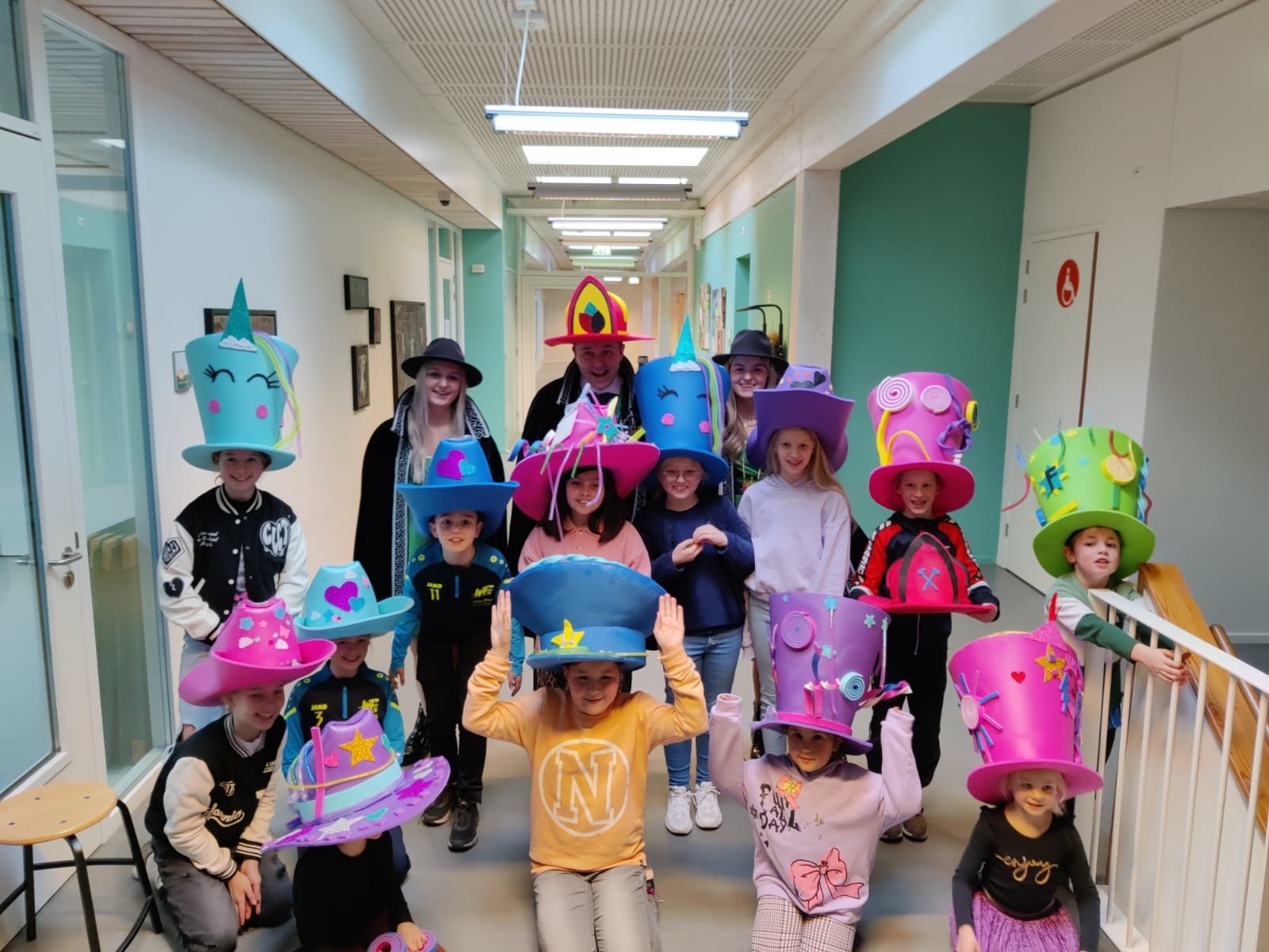 Alle foam onderdelen van de enorme hoeden werden met een hitteblazer aan elkaar geplakt en op maat gemaakt voor iedereen.