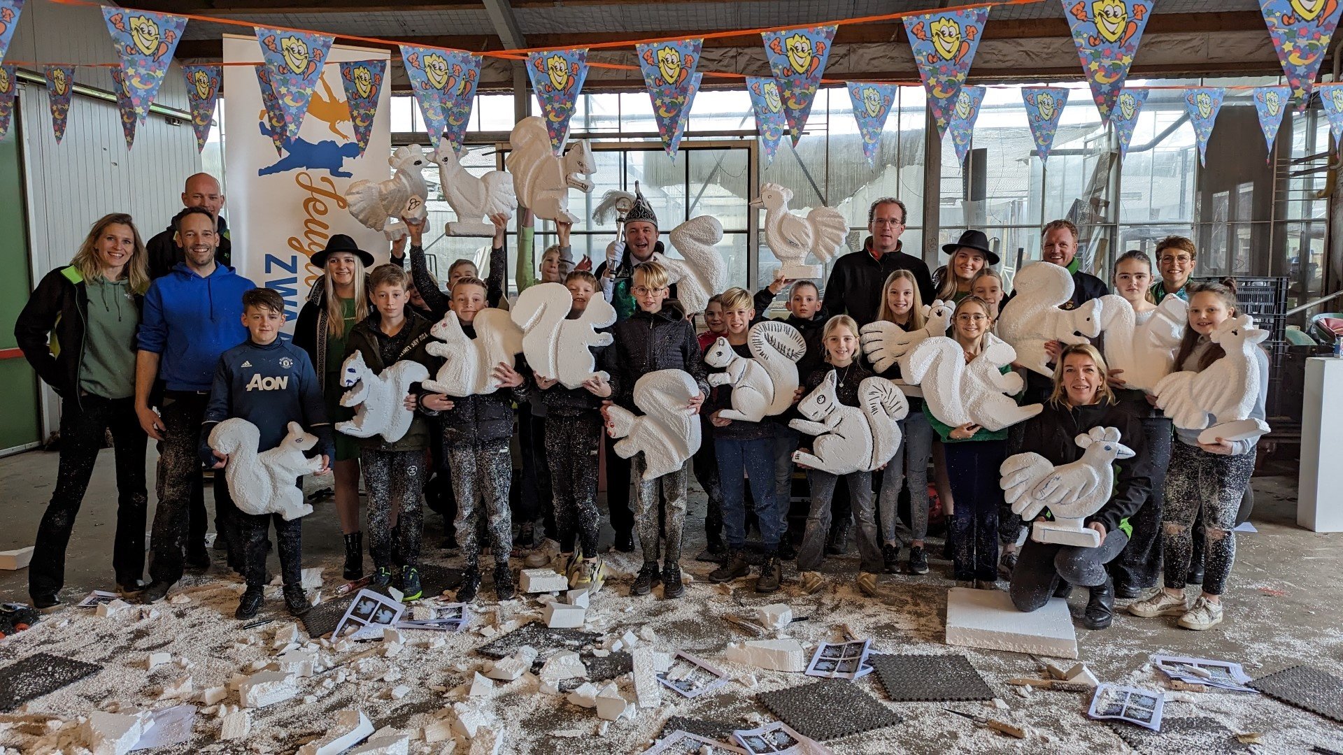 Met veel lol en plezier werden alle tips en tricks van het piepschuim-bewerken aangeleerd: meten, aftekenen, zagen, raspen en schuren tot een geweldig eindresultaat.