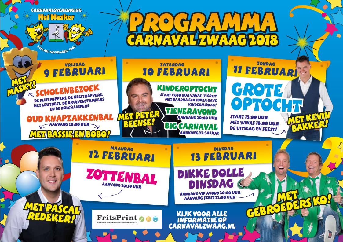 Op de achterkant het volledige carnavalsprogramma zodat je niets hoeft te missen!