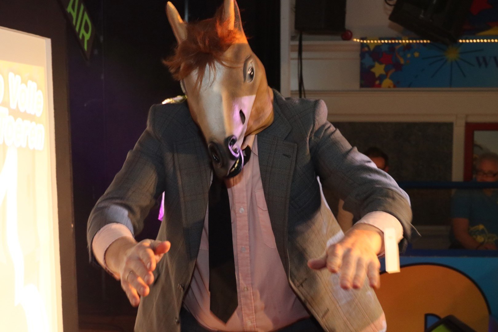 Onze Adjudant Jeroen kroop in de huid en dook achter de grote snor van Cheil… ehm… Chiel Montagne als presentator.
