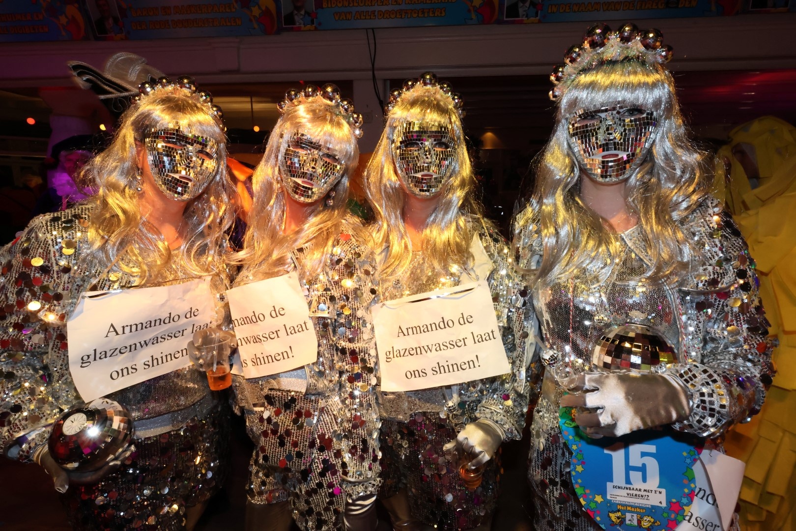Uiteindelijk werden bij de groepen tot en met vier personen Plastic Fantastic met 'Na jaren carnaval raakte Masky in verval’ de winnaar. Een vervallen Masky mascotte hadden deze meiden gemaakt. Bij de grote groepen was het 't Veesttiem met 'in onze wasstraat krijgt alles weer clear vision' die er met de We are de champions-cub vandoor gingen. Het publiek ging in een karretje tussen de verklede ronddraaiende borstels door, en maar bellenblazen.
