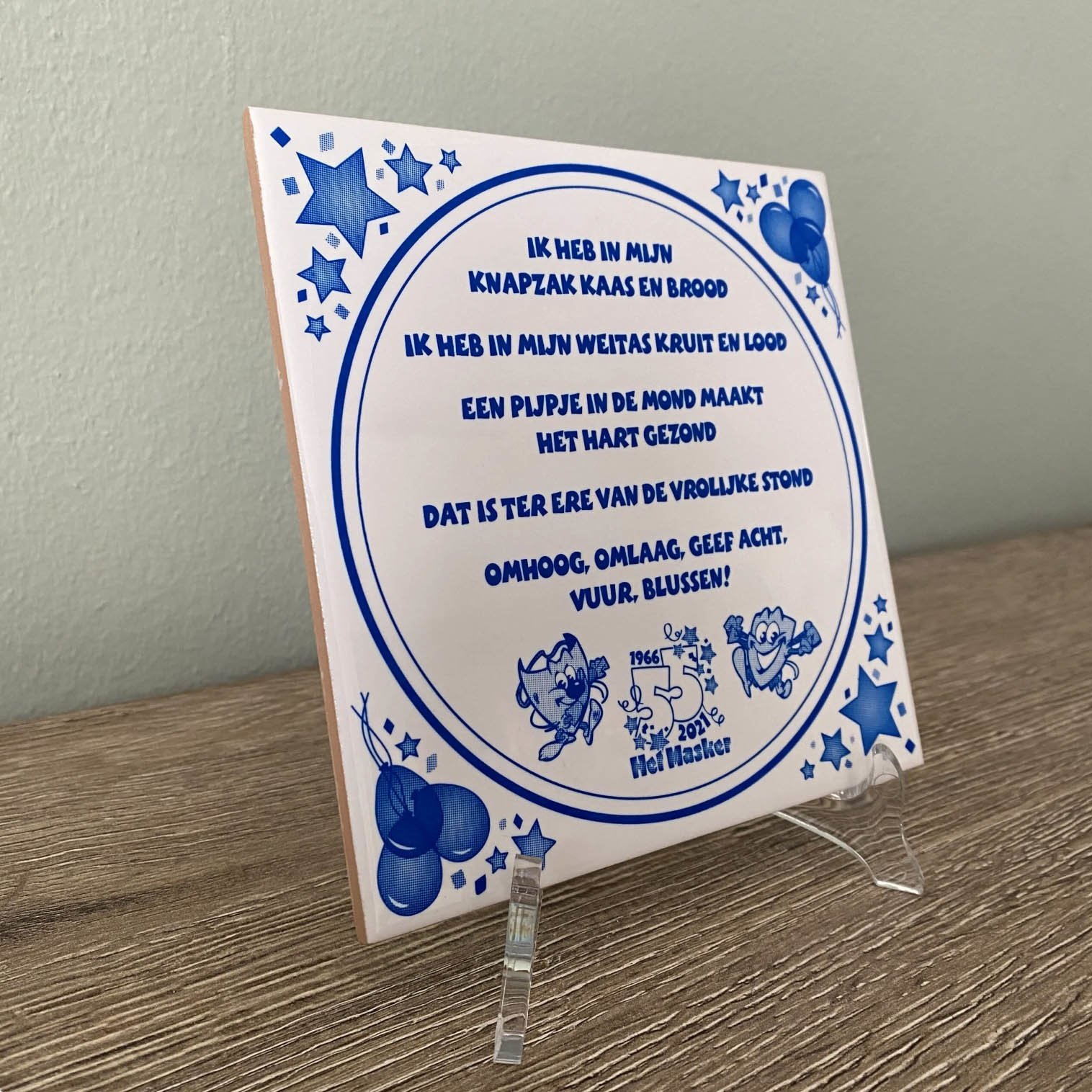 Voor maar € 11,- ontvang je het tegeltje en een kunststof houder om hem mooi neer te kunnen zetten in de vitrinekast, op het toilet of schoorsteenmantel. Let op, de oplage is beperkt dus wacht niet te lang!