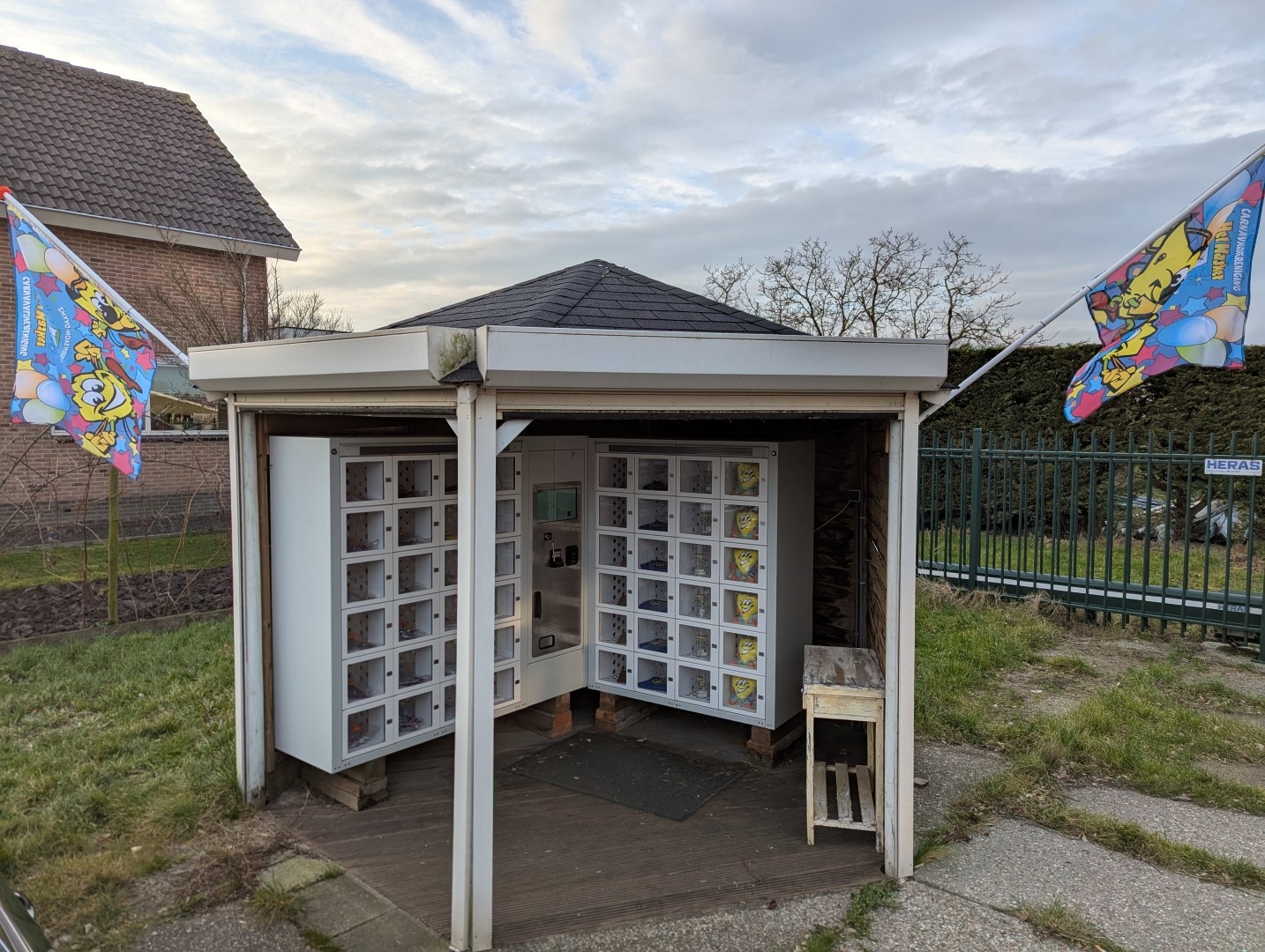 Waar je normaliter in het oogstseizoen aardbeien en kersen kan kopen, kun je nu Masky knuffels, vlaggenlijnen, tegeltjes met het Zwaagse volkslied, grote carnaval Zwaag vlaggen en andere leuke items uit de muur trekken (alleen pin).