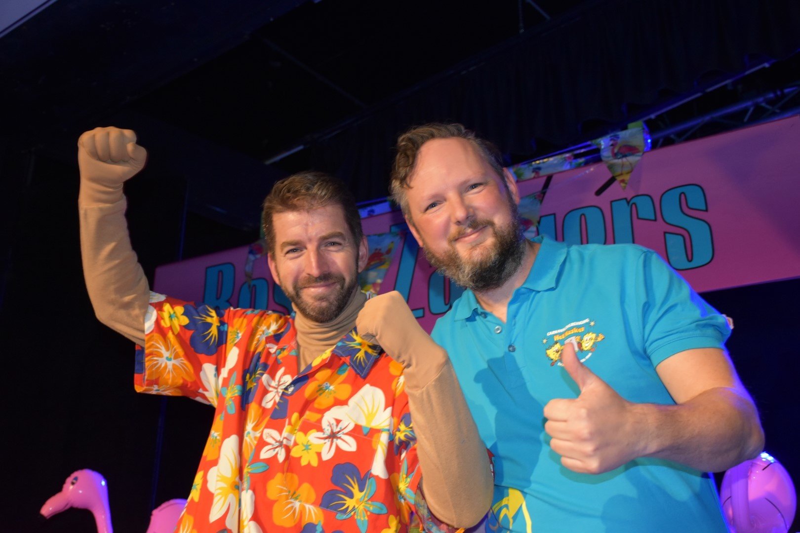 In dezelfde act als Maarten stond een Hawaï mannetje. Deze vrolijke en enthousiaste gast bleek René Gitzels te zijn. Naast meerdere Marcels, Jeroenen, Ericken en Knollen is dit onze derde René in het gezelschap. Ziet u een patroon?